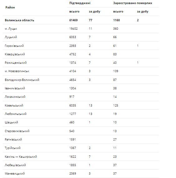 77 нових та 2 летальних випадки: ситуація з коронавірусом на Волині за минулу добу