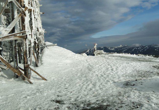 На високогір'ї Карпат сьогодні, 3 червня, погода залишається зимовою. Так, на горі Піп Іван Чорногорський лежить сніг, а температура повітря -1°С.