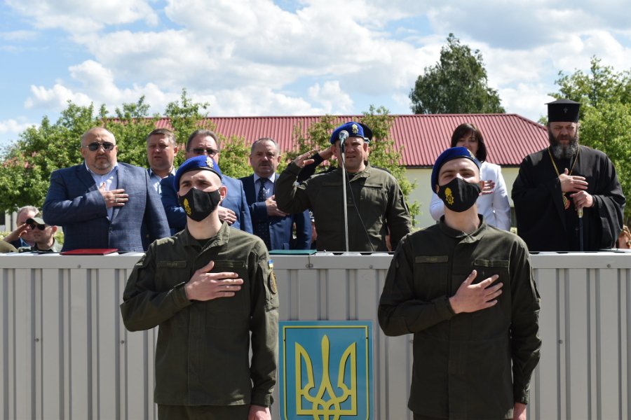 До заходу долучилися представники обласної та місцевої влади, священнослужителі, військовослужбовці, ветерани та керівники вищих навчальних закладів. За дорученням голови облдержадміністрації привітати нацгвардійців приїхав заступник очільника ОДА Анатолій Костик.