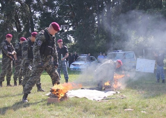 Бійці роти міліції особливого призначення «Беркут» УМВС України у Волинській області продемонстрували прийоми рукопашного бою, тактику затримання злочинців, вміння розбивати плити і палаючі дошки.