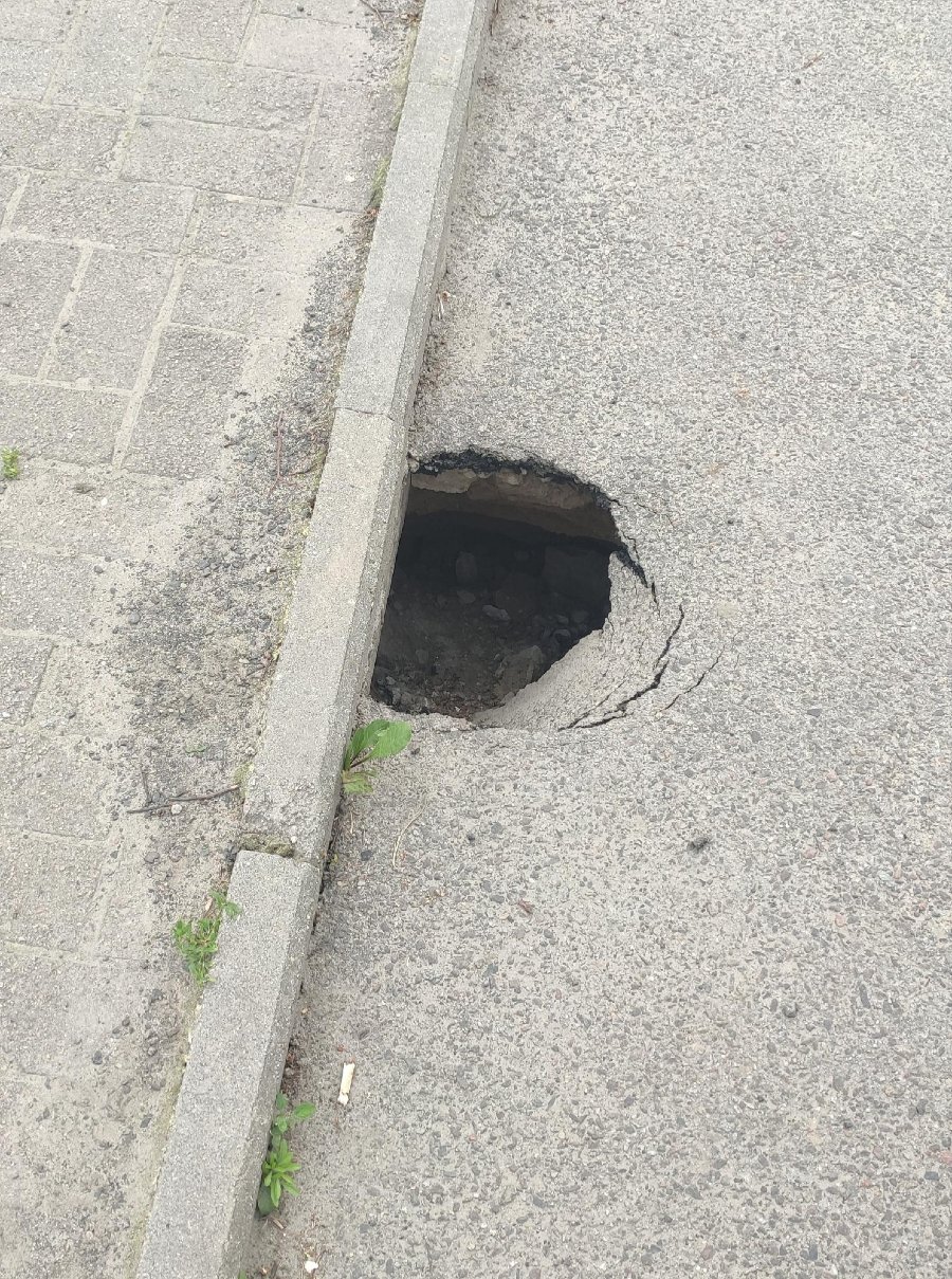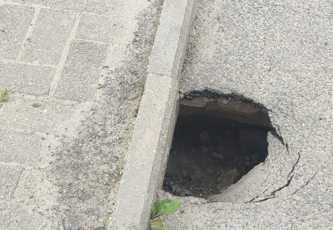 У Луцьку на автобусній зупинці провалився асфальт. ФОТО