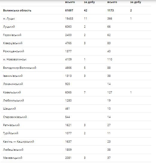 Головний державний санітарний лікар області інформує, що за останню добу на Волині зареєстрували 42 нових підтверджених випадки коронавірусної хвороби COVID-19 (з них дітей – 1, медпрацівників – 2).