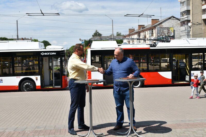 У Луцьку сьогодні, 9 червня, ДП “Автоскладальний завод №1” ПАТ “Автомобільна компанія “Богдан Моторс” передав місту два нових, сучасних та комфортабельних тролейбуси.