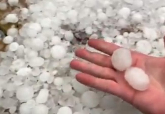 Негода вдарила по Дніпру опівдні. Спека одразу змінилася холодом і з неба посипалися крижинки.