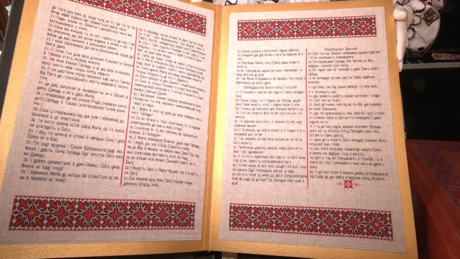 "Але перший був встановлений у 2019 році найбільшою вишиваною книгою Євангеліє від Святого Матвія, а сьогодні ось такий спосіб. Я навіть попросила своїх знайомих, щоб вони принесли мої вишивані книги зі своєї колекції, ті, які були придбані ними. Тому вони також тут для того, щоб мати більшу кількість книг. Але їх значно більше, можна помножити на два. Тому що нашого цвіту по всьому світу", – розповіла авторка вишиваних книг.