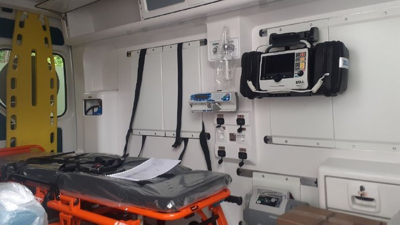 У машині є два кисневих балони, набір шийних комірців, чотирьох різних розмірів, дошка для транспортування хворих з ураженням хребта.