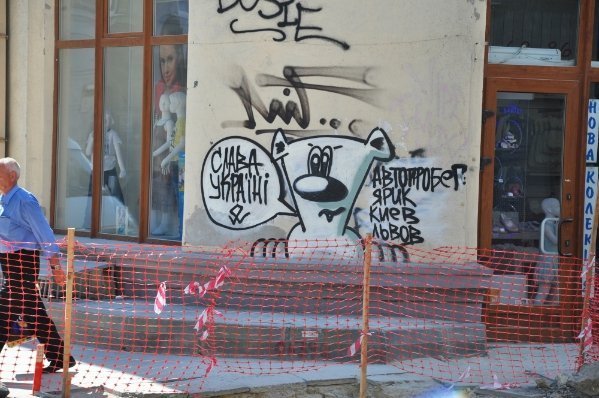 Поруч написано «Львовский мохито, Умка 2013». Малюнок розташований неподалік від місця, де в роки Другої світової війни перебував концтабір. Крім цього, художник у центрі міста намалював відомого ведмедика з мультфільму, який викрикує «Слава Україні!»
