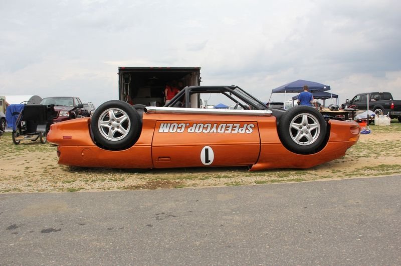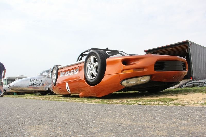 Своє перевернуте творіння винахідник виставив на участь у заїзді по гоночній трасі в Нью-Джерсі. На щастя, місцевих водіїв вже ніщо не могло здивувати, і аварій через несподіваного гонщика не сталось.