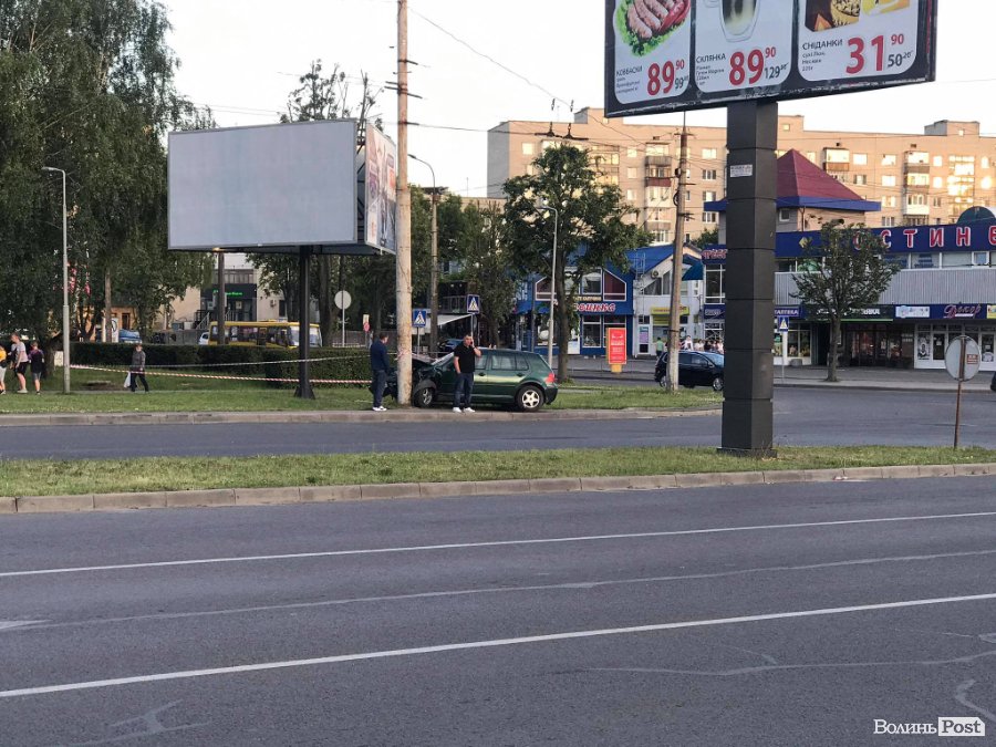 Спрацювали подушки безпеки: у Луцьку біля торгового центру авто врізалося у стовп. ФОТО