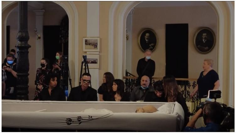 Труну з артистом привезли о 10:30. На церемонію приїхали вихованці Чапкіса, а також діти, онуки та інші родичі, друзі та колеги.