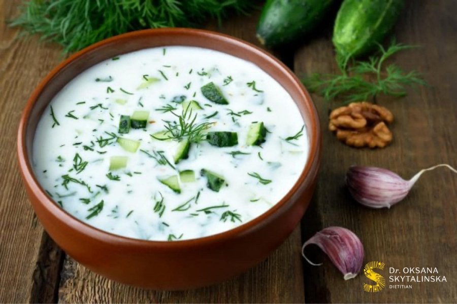 • Замість "комплексних обідів" – холодні супи (окрошка на квасі або кефірі, гаспачо, холодний борщ), овочевий салат з айраном.