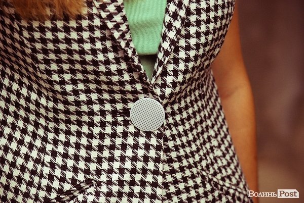 «Інколи купую одяг за кордоном, оскільки я є членом організації YMCA, тому часто випадає можливість потрапити туди на тренінги чи фестивалі. Але принаймні раз у місяць я ходжу на стоки і теж щось купую. Деякі речі шию на замовлення. Як, наприклад, цей піджак. Подібний я побачила в журналі і схожий захотіла собі. Тоді я вибрала йому такий клітинковий принт і замовила на пошиття.