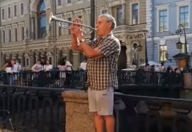 В Інтернеті з’явилось відео, на якому невідомий музикант в центрі Санкт-Петербурга виконав на трубі гімн України.