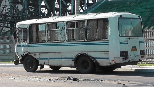 Як йдеться в повідомленні, в автобуса розтрощений лівий бік.