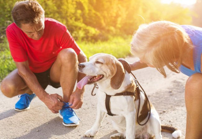 Вигулюйте вихованців рано-вранці та пізно ввечері. Обирайте маршрути, де є можливість пройтися травою (біля водойм, у тінистих місцях), адже асфальт і бруківка сильно нагріваються. Беріть із собою пляшку з водою та ємність, куди її можна буде налити.