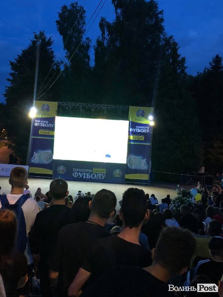 Сьогодні, 3 липня, поруч з входом у Центральний парк культури та відпочинку імені Лесі Українки у Луцьку зібралося чимало вболівальників футболу. Саме там міська рада облаштувала фан-зону для спільного перегляду історичного для нашої держави футбольного матчу. Рівно о 22.00 розпочався поєдинок за вихід у півфінал Євро-2020. У Римі збірна України грає з Англією в 1/4 фіналу.