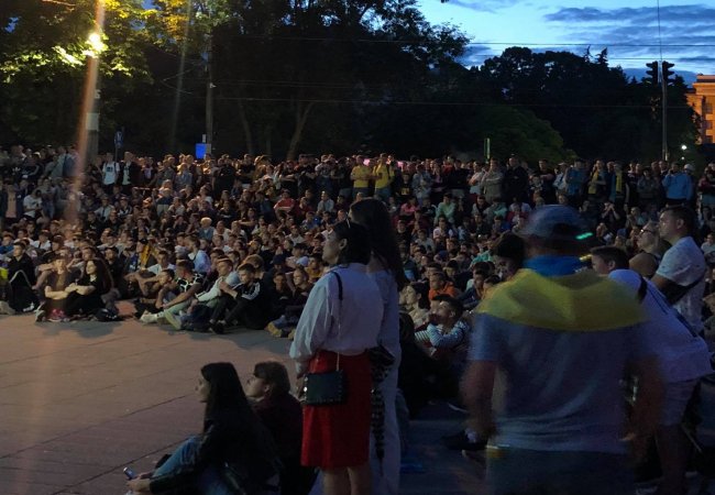 Сотні лучан просто неба емоційно підтримують українську збірну: «Україна»,«Україна вперед»!