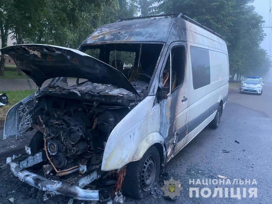 У Луцьку на проспекті Соборності, 30 у ніч на 5 липня горів бус Volkswagen.