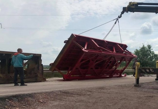 Компанія-підрядник, яка виконує роботи, зробила земляний насип — основу для тимчасового автомобільного мосту. Тепер мають встановлювати металеву конструкцію. На це потрібно приблизно місяць. Тимчасовий міст планували збудувати до кінця червня, але висновок експертизи отримали лише минулого тижня.