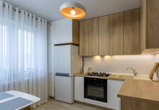 • Можете встановити кухню вже незабаром. Зазвичай, виготовлення кухні на замовлення не потребує багато часу, навіть, коли мова йде про середній та високий рівень складності. Сучасні технології й матеріали забезпечують швидкий процес виготовлення та монтажу.