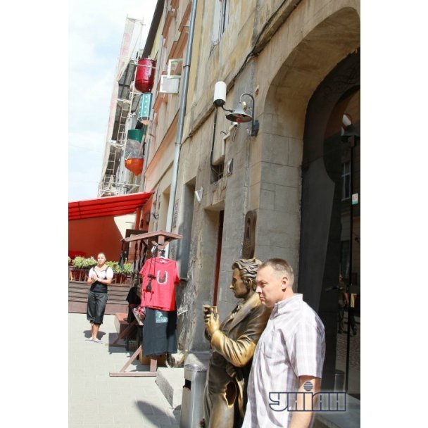 Зазначимо, розмістився дивний арт-об'єкт неподалік від не менш дивного закладу харчування під назвою "Мазох".