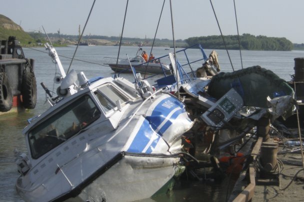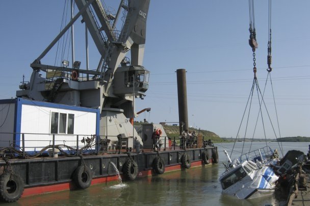 У Росії рятувальники дістали з-під води річки Іртиш теплохід "Полісся-8".