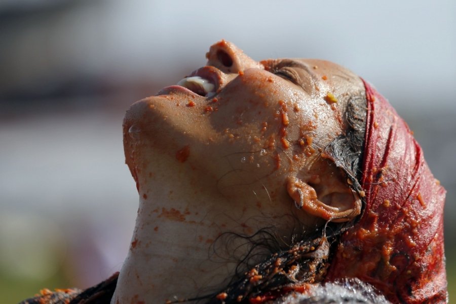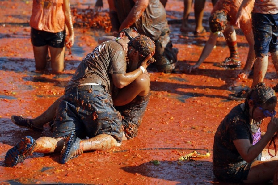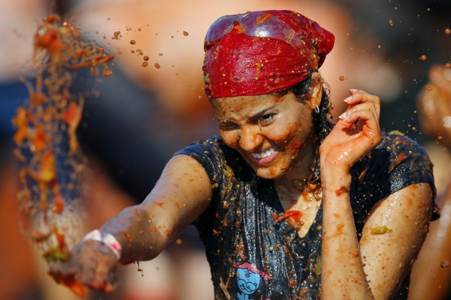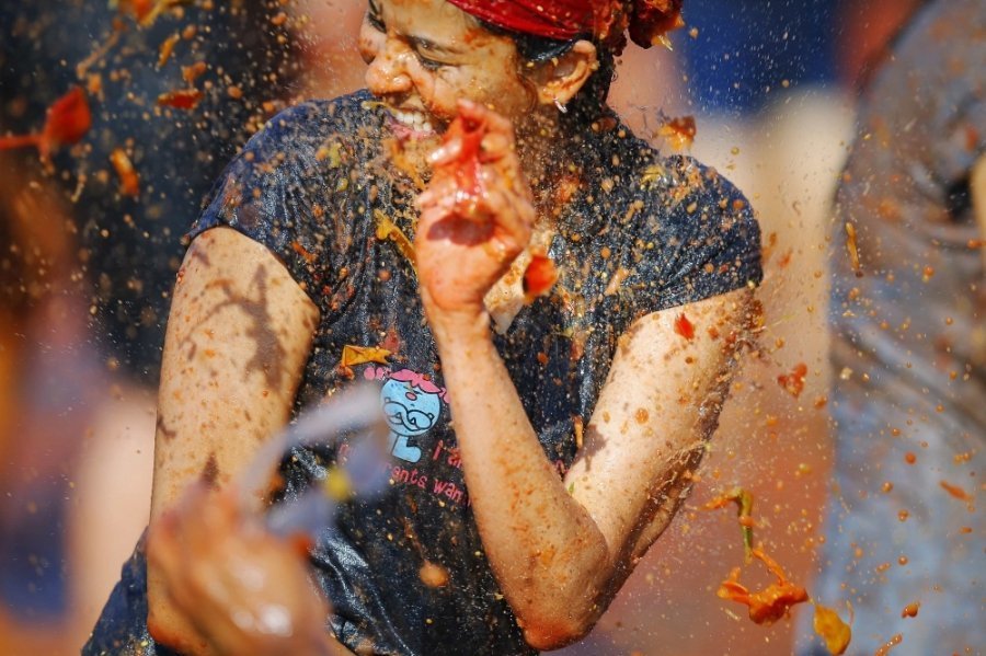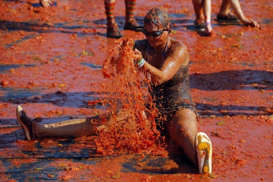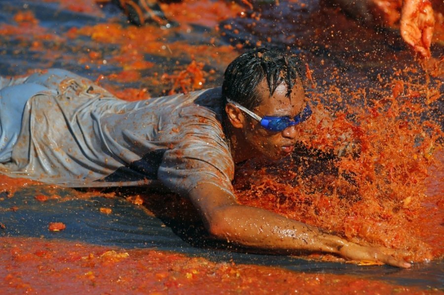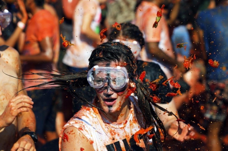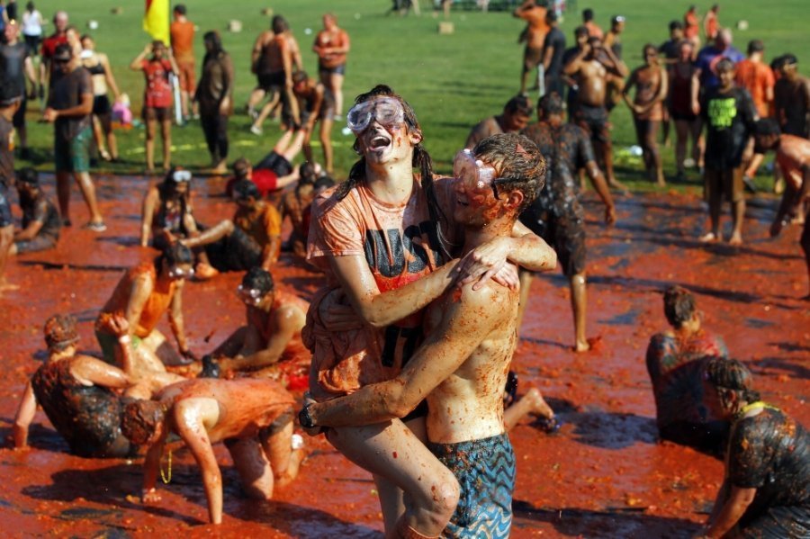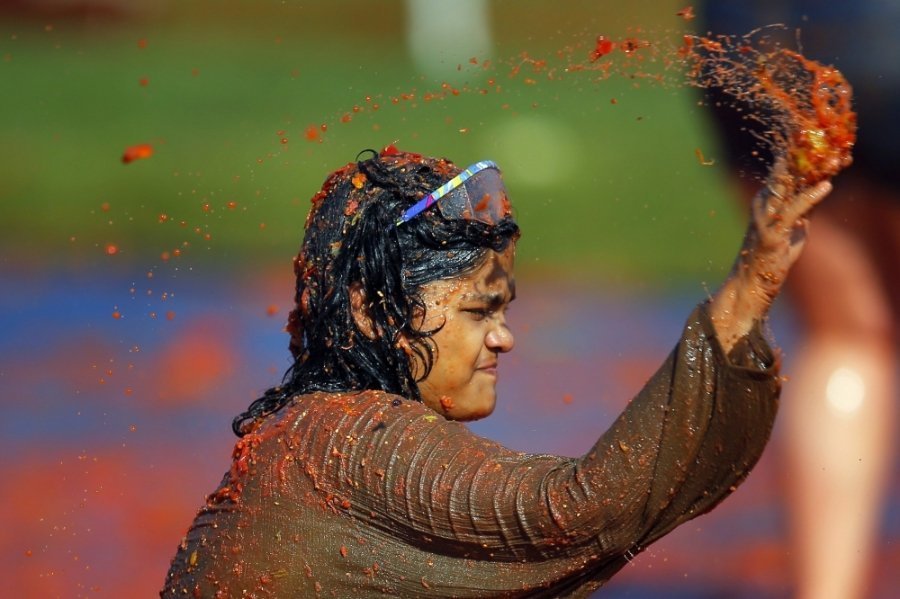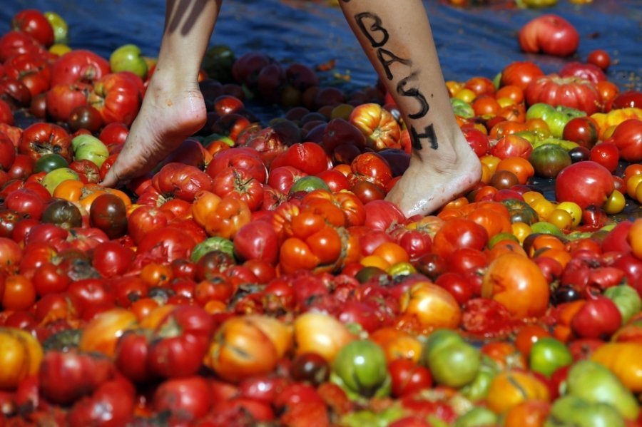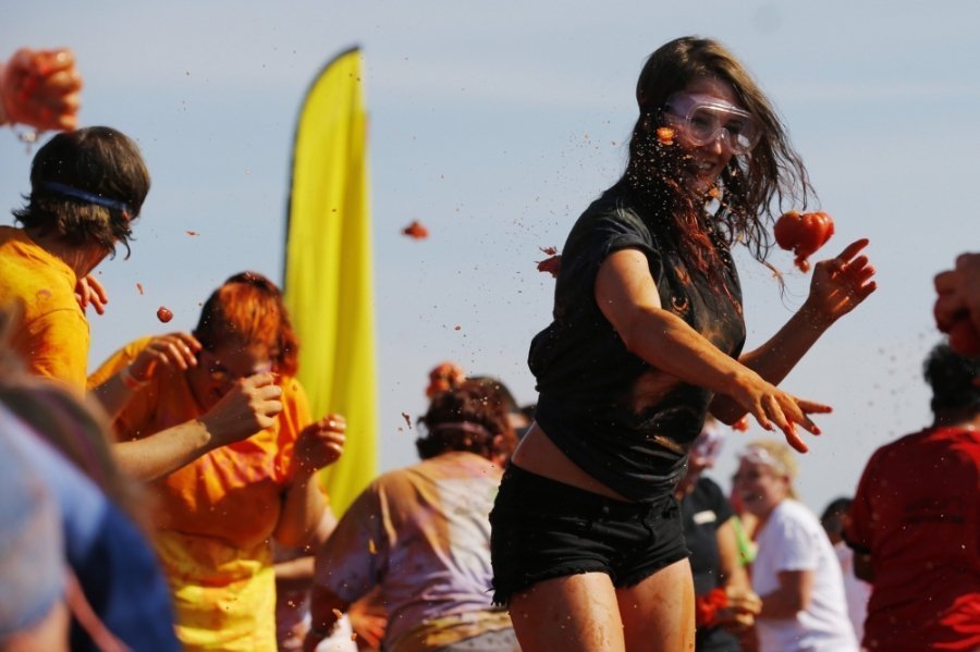 Сотні учасників кидалися неїстівними помідорами один у одного і "використовували усі частини тіла, щоб їх ловити", описують цю подію організатори.