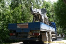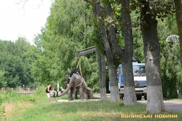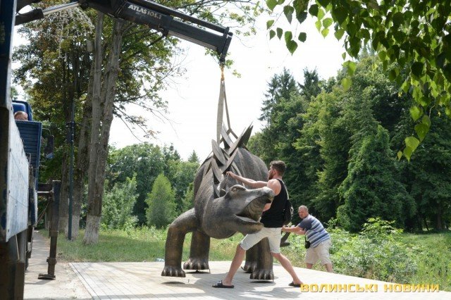 Біля луцького зоопарку встановили кількаметрові скульптури динозавра та слона. ФОТО