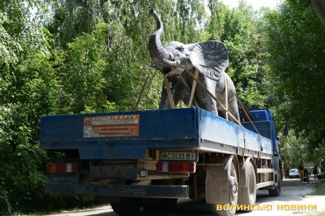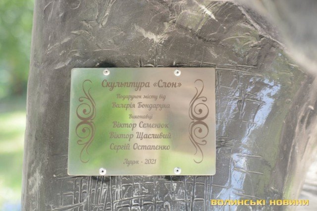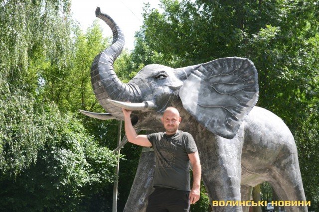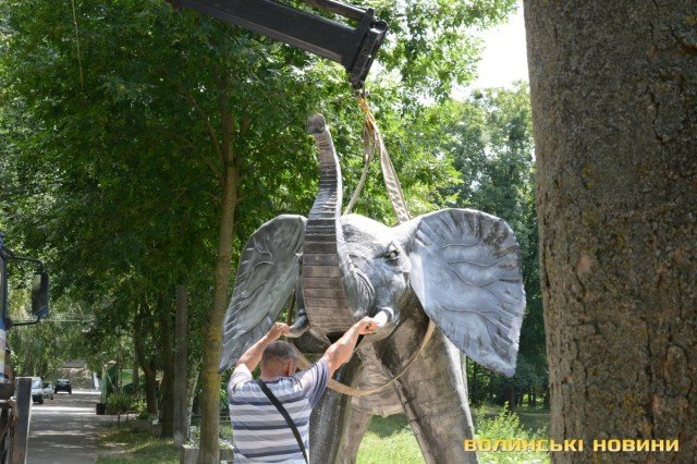 Як повідомляє ІА Волинські Новини,над металевим слоном чотири місяці працювали троє ковалів: Віктор Семенюк, Сергій Остапенко та Віктор Щасливий. Висота цієї фігури близько трьох метрів, а вага – понад півтори тонни. Віднедавна цей металевий слон став власністю міста, адже це – подарунок від меценатів.
