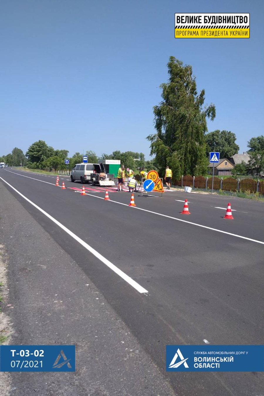 Водночас тривають роботи з встановлення дорожніх знаків та облаштування узбіч. Про це повідомляє Служба автомобільних доріг у Волинській області.