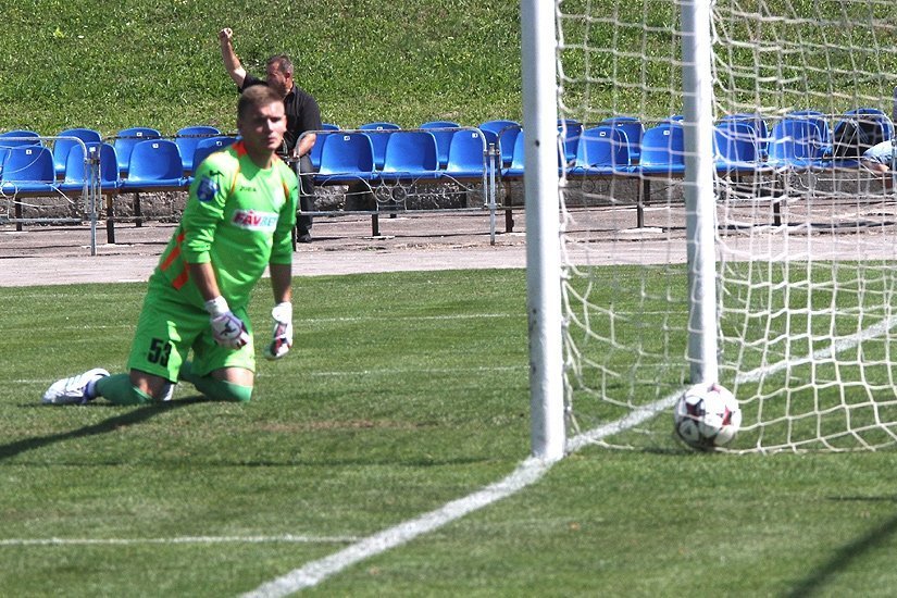 Відкрили рахунок в матчі господарі: нападники "хрестоносців" поборолися в штрафній після вкидання ауту, м’яча на лінії штрафного підхопив Сергій Коломієць й з другого дотику увігнав кулю в лівий від кіпера кут воріт – 1:0.