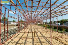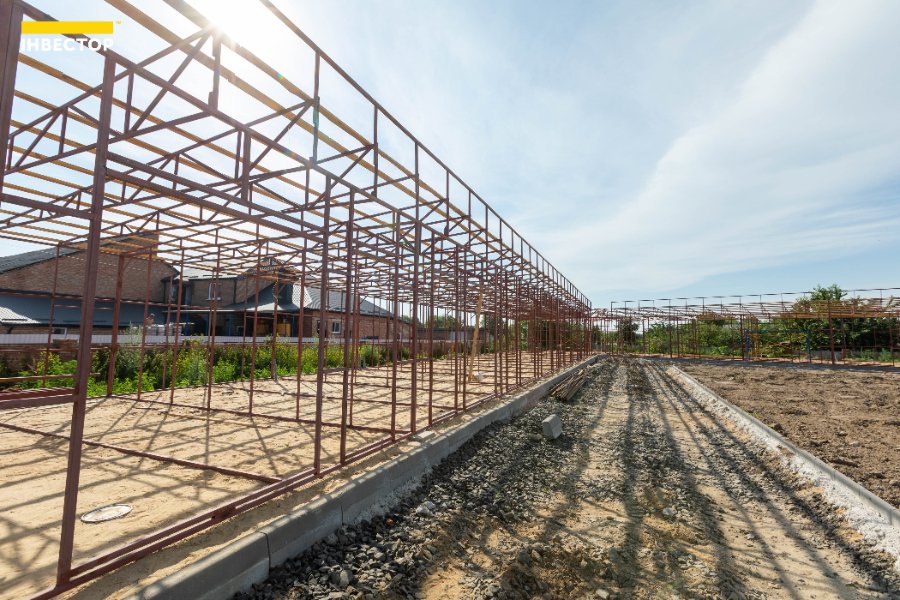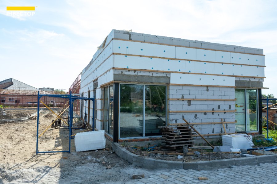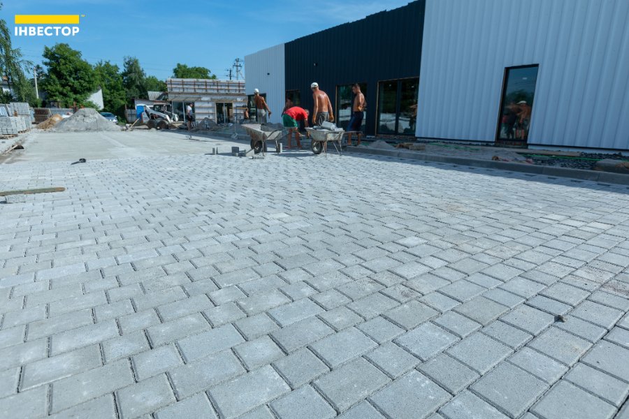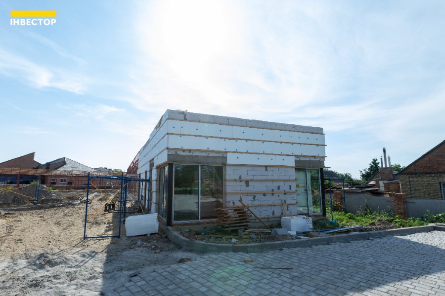 Наразі уже збудовані капітальні споруди, тут змонтовані вікна і двері, а також приступили до фасадних робіт. Для торгових павільйонів повністю спорудили каркас, незабаром будуть приступати до зведення стін. Також вже облаштована парковка і розрівнюють територію під зону відпочинку.