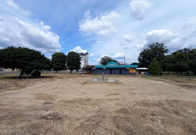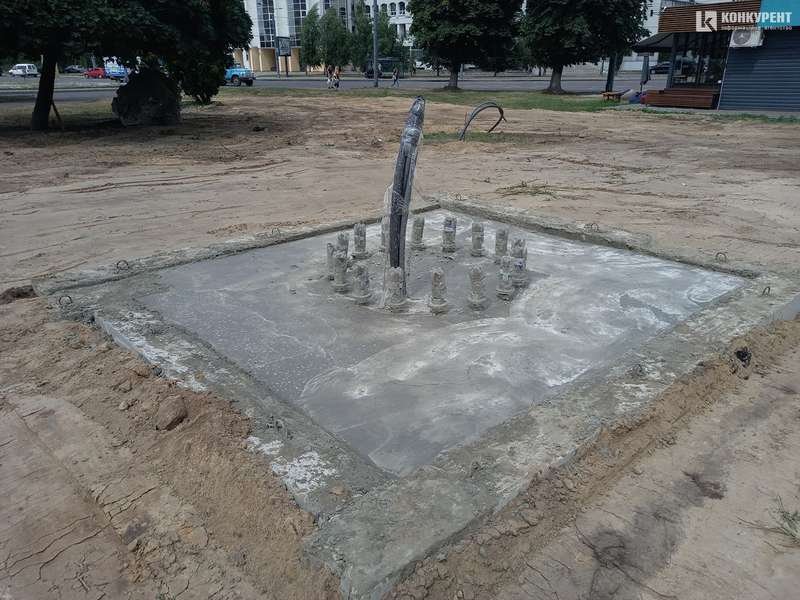 На території біля будівлі вже завершилися підготовчі роботи – розрівняли землю та зацементували місце, де встановлять флагшток для найбільшого прапора.