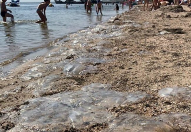 У селі Щасливцеве Херсонської області туристи скаржаться на величезну кількість медуз у морі. З цієї ж причини цього року там дуже мало відпочивальників.