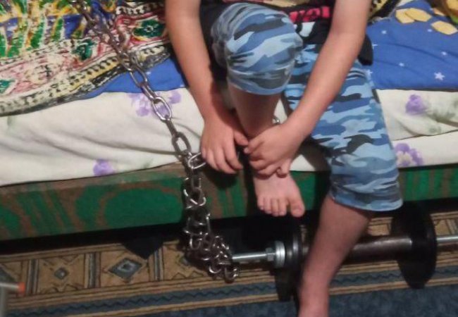 Вони встановили, що хлопця прикував ланцюгом до батареї співмешканець матері, а сам пішов на роботу. За його словами, у такий спосіб він намагався «перевиховати» сина, який нібито постійно втікає з дому.