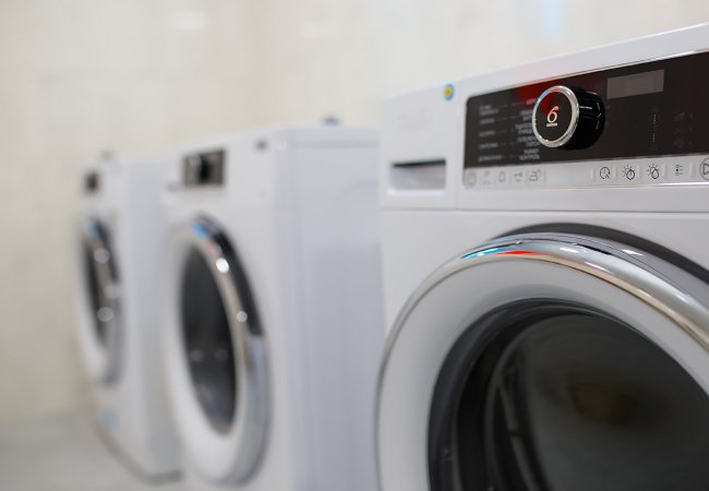 Так, у пральнях зроблять натяжні стелі, проведуть облицювання поверхонь стін керамiчними плитками, замінять труби, вимикачі, розетки, встановлять сталеві ванни, умивальники.
