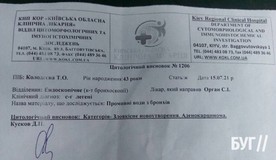 У 44-річної Тетяни Осадчої виявили рак легень 4 стадії з метастазами в кістках. На 6-ть курсів хіміотерапії необхідно 87 тисяч гривень. Про це пише видання "БУГ".