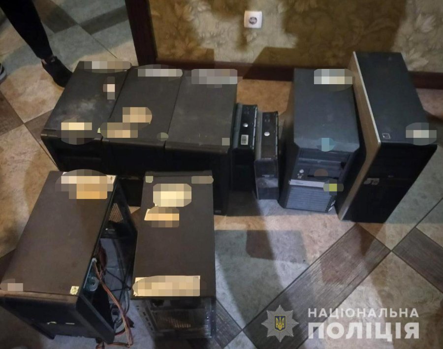 На місце викликали слідчо-оперативну групу для документування протиправної діяльності. Під час проведення першочергових слідчих дій виявили та вилучили: 9 системних блоків, 9 комп’ютерних моніторів, 3 флешносії, комплектуючі до комп’ютерної техніки та мережі Інтернет, 2 мобільних телефони, чорнові записи адміністратора, гроші в сумі 700 грн.