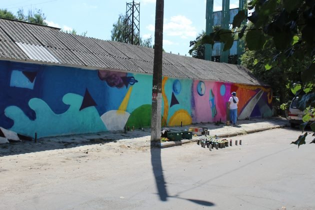 “Павло мене попросив розробити ескіз для нового муралу та повідомив, що це має бути про екологію. Перший ескіз, який я створив був про те, що пластикові пакети не переробляються. Окрім цього, малюнок був розрахований на зовсім іншу стіну – вузьку та високу. Але плани змінилися. Із усіх варіантів у нас була лише ця – широка та довга стіна, тому потрібно було додати ще інші асоціації, щоб воно гармонійно виглядало. Концепція малюнку в тому, що тут буде зображено багато речей, які дотичні до проблем з екологією”, – каже Андрій.
