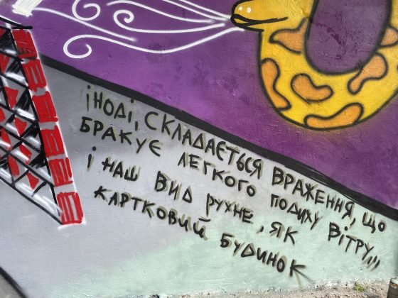 “Екосвідомим бути просто!” – саме таку назву отримав четвертий стінопис. Автором муралу є львів’янин Андрій. Він розповів, що розробити ескіз йому запропонував керівник МЦ “Нові Крила“ Павло Медина.
