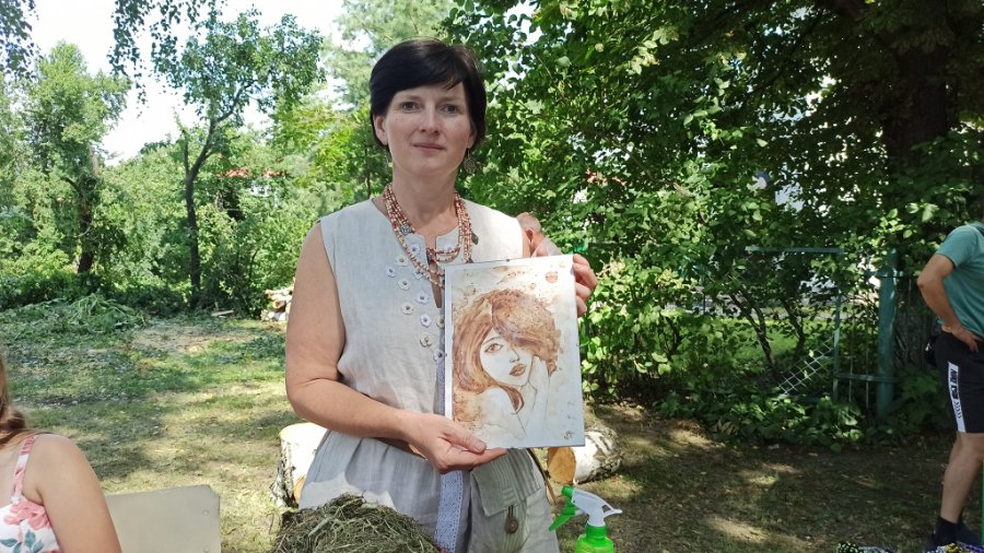 «Я малюю кавою, проводжу майстер-класи із сіномотання - роблю іграшки із сіна. Малювати кавою легко, можна навчити будь-кого», - розповіла майстриня.