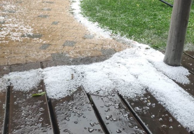 Повідомляється, що розмір граду був близький до розміру горошини.