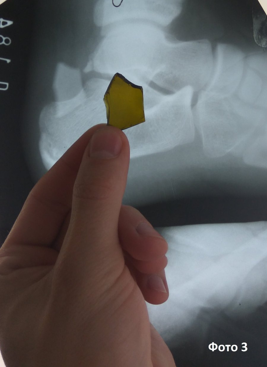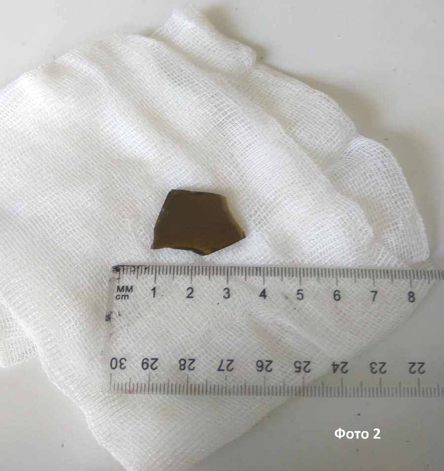 Після проведеного хірургічного втручання стороннє тіло успішно вилучено (фото 2,3). Медики підкреслюють, що не всі види скла є рентгенконтрастними. В даному випадку найймовірніше, що скло містило в своєму складі свинець тому і було виявлене на рентгенограмі.