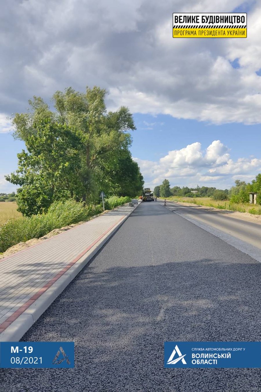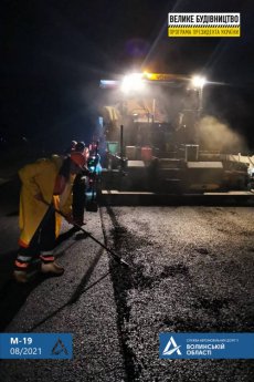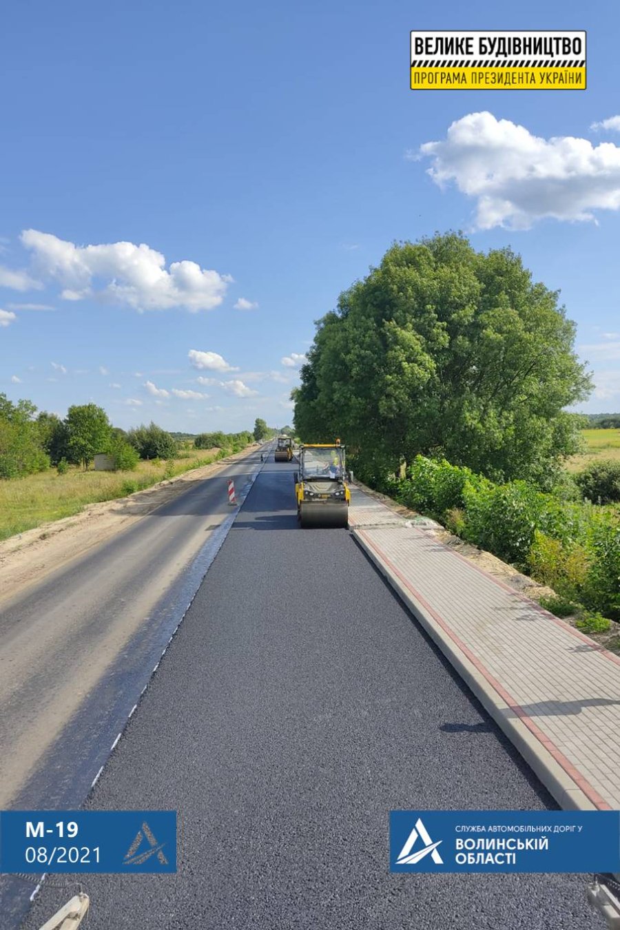 Ремонтні роботи проходять на семи відтинках шляху по обидві сторони від міста Ковеля. Із майже 54 км дороги М-19, що наразі відновлюємо, фінішне асфальтування проведено більш ніж на 31 км, ще понад 21 км встелені першим шаром асфальту.