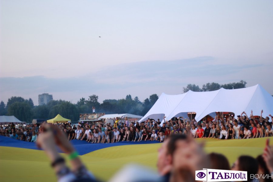 Традиційний патріотичний масовий флешмоб відбувся після виступу гурту «Фіолет», пише ІА Волинські новини.