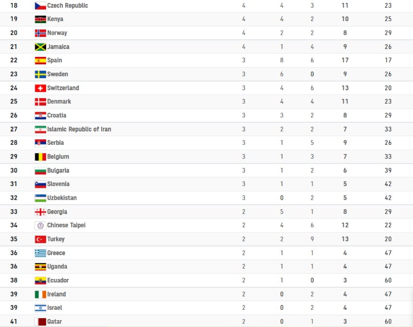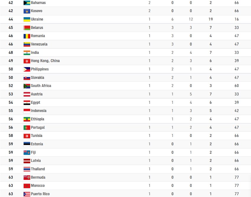 Відтак, Україна офіційно посіла 44 місце серед 206 країн-учасниць, й стала 16-тою за загальною кількістю здобутих нагород.