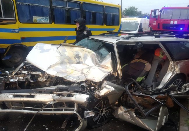 На Львівщині внаслідок зіткнення автобуса з автомобілем травмовані шестеро осіб.