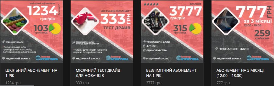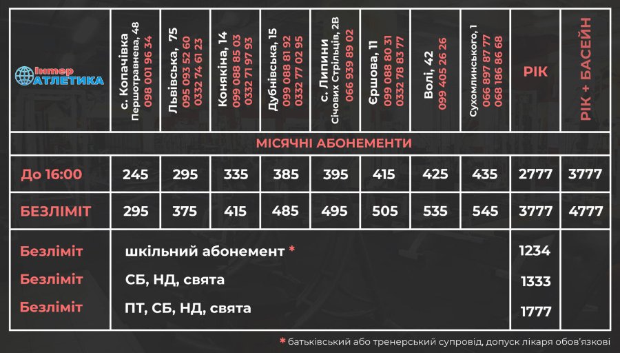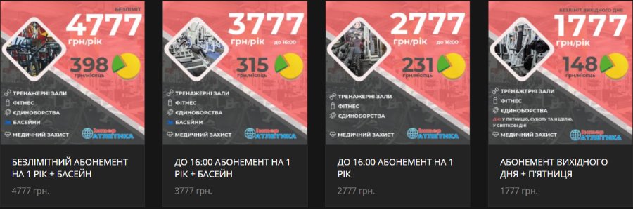 Ціна абонементів у різних локаціях мережі відрізняється.