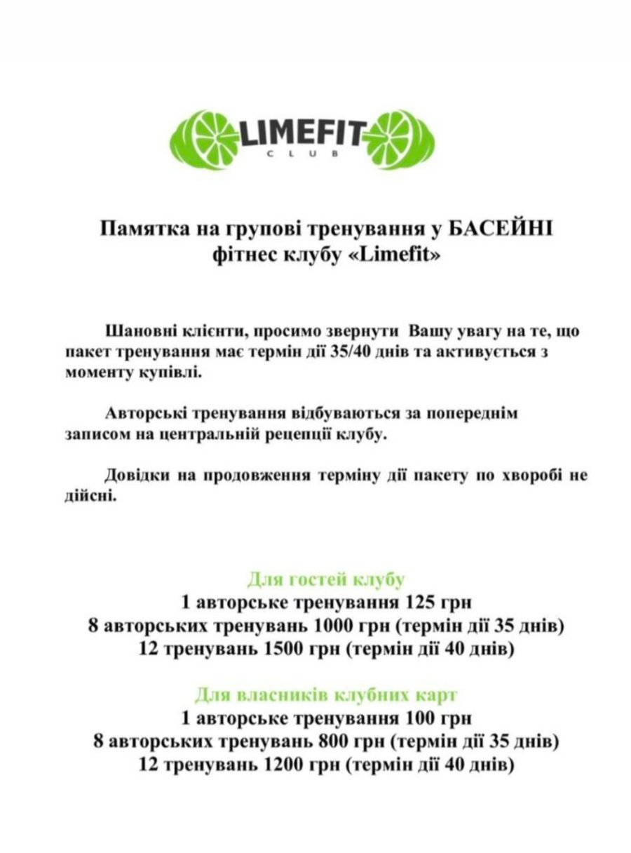 - Разове відвідування (придбання тільки онлайн) - 80грн / 3дні;