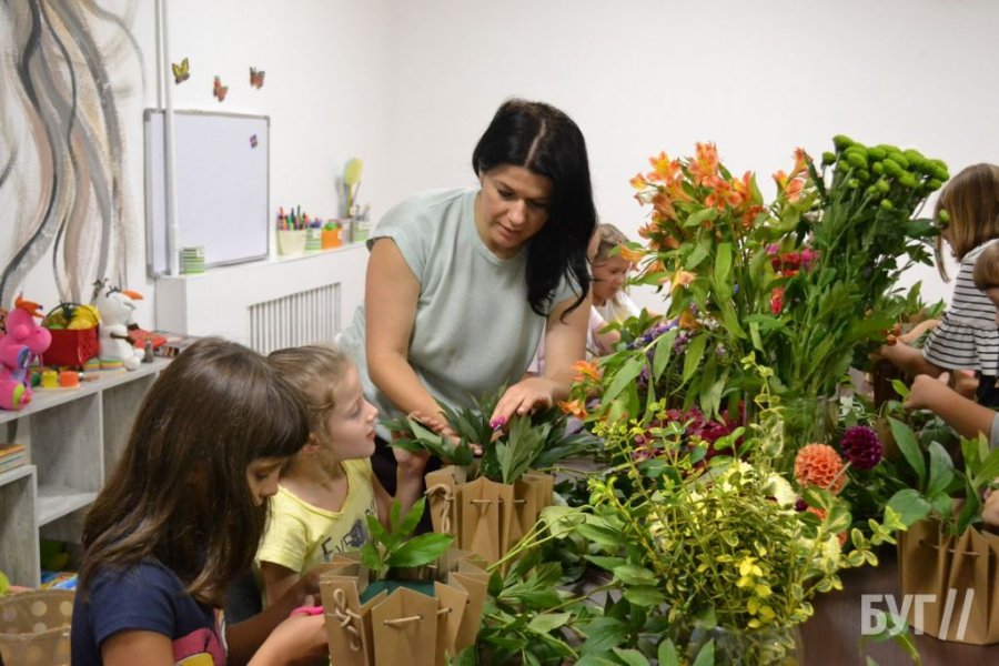 Флористи навчали дітлахів, як зробити креативну композицію з живих квітів своїми руками, за допомогою спеціального наповнювача – губки «оазис», що довгий час утримує вологу всередині.